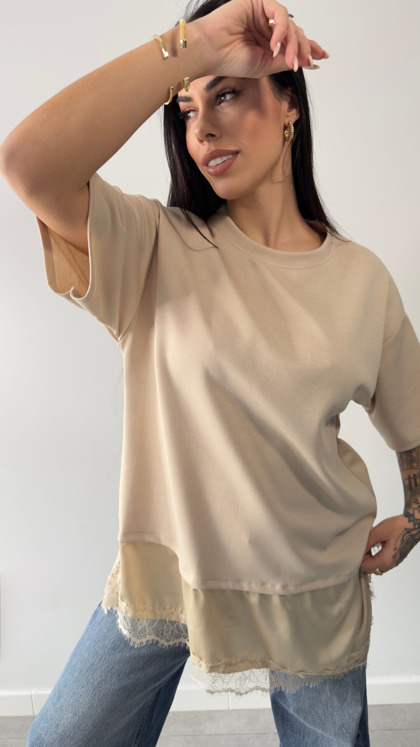 Camiseta over lencera beig